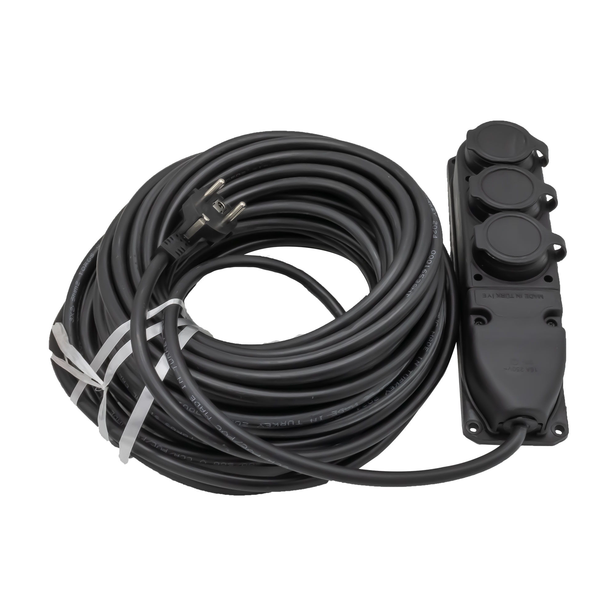 Prelungitor profesional din cauciuc de 10 metri, cu 3 prize Schuko și capace de protecție etanșe. ..