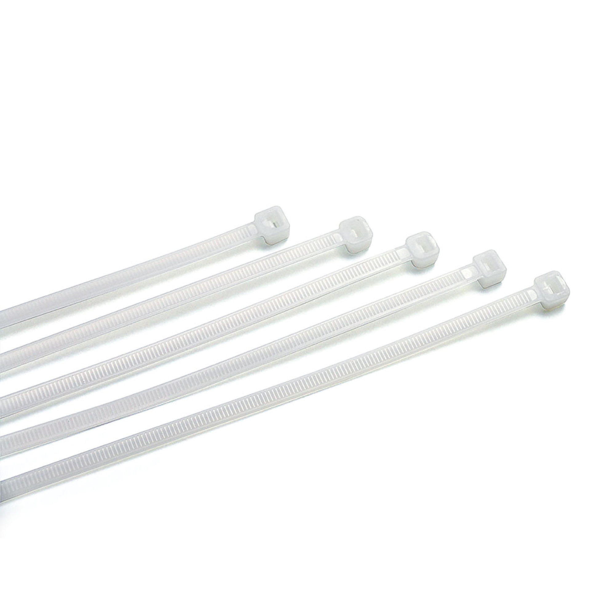 Coliere albe 2,5 x 100 mm, rezistente și practice, ambalate la 100 bucăți.