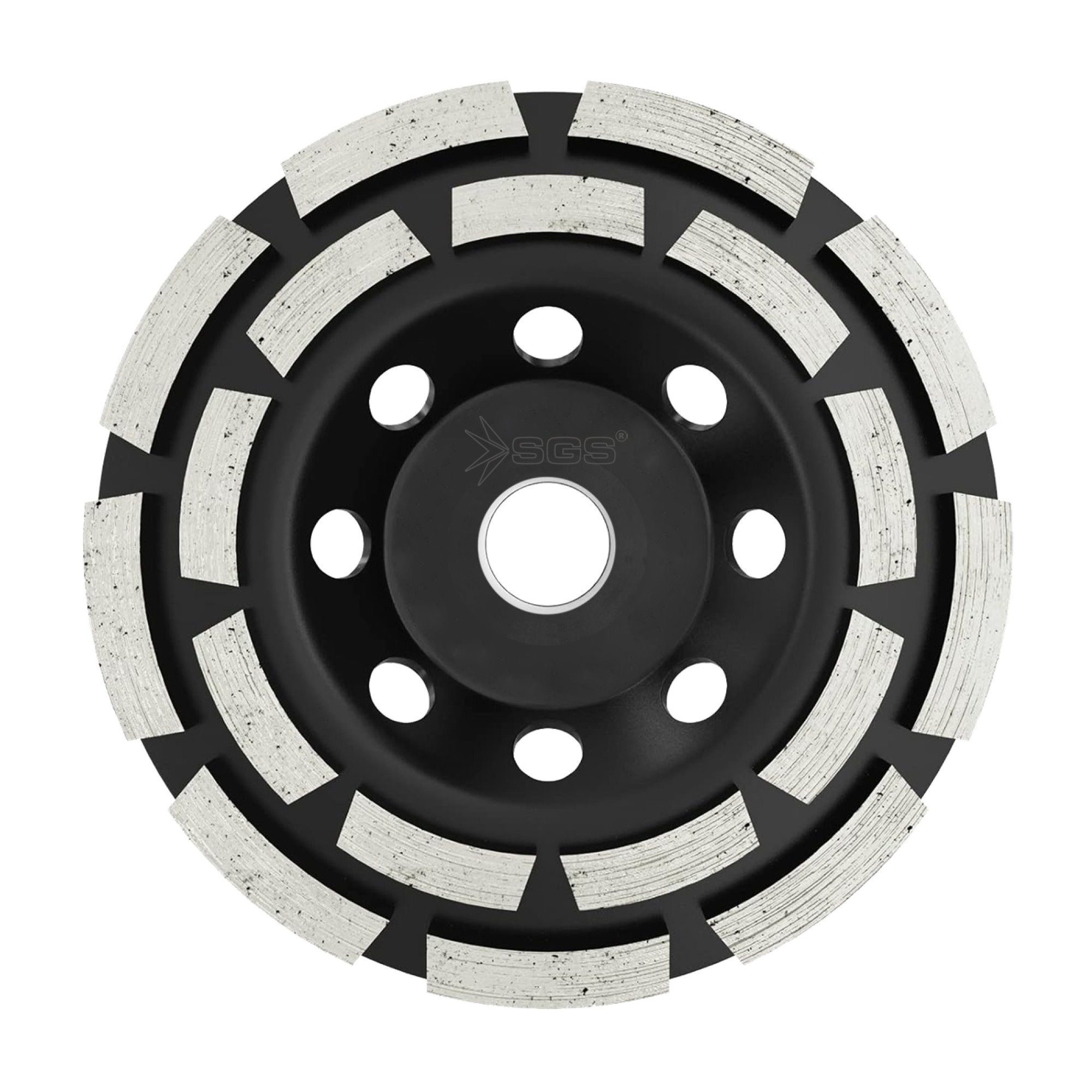 Disc cupă diamantat SGS2315, Ø180 mm, cu design dublu rând, este conceput pentru șlefuirea intensivă și îndepărtarea rapidă a materialului pe suprafețe dure precum beton, marmură, granit și piatră naturală. Tehnologia cu diamant premium garantează o performanță superioară, durată mare de viață și șlefuire uniformă. Recomandat pentru utilizare profesională și hobby.