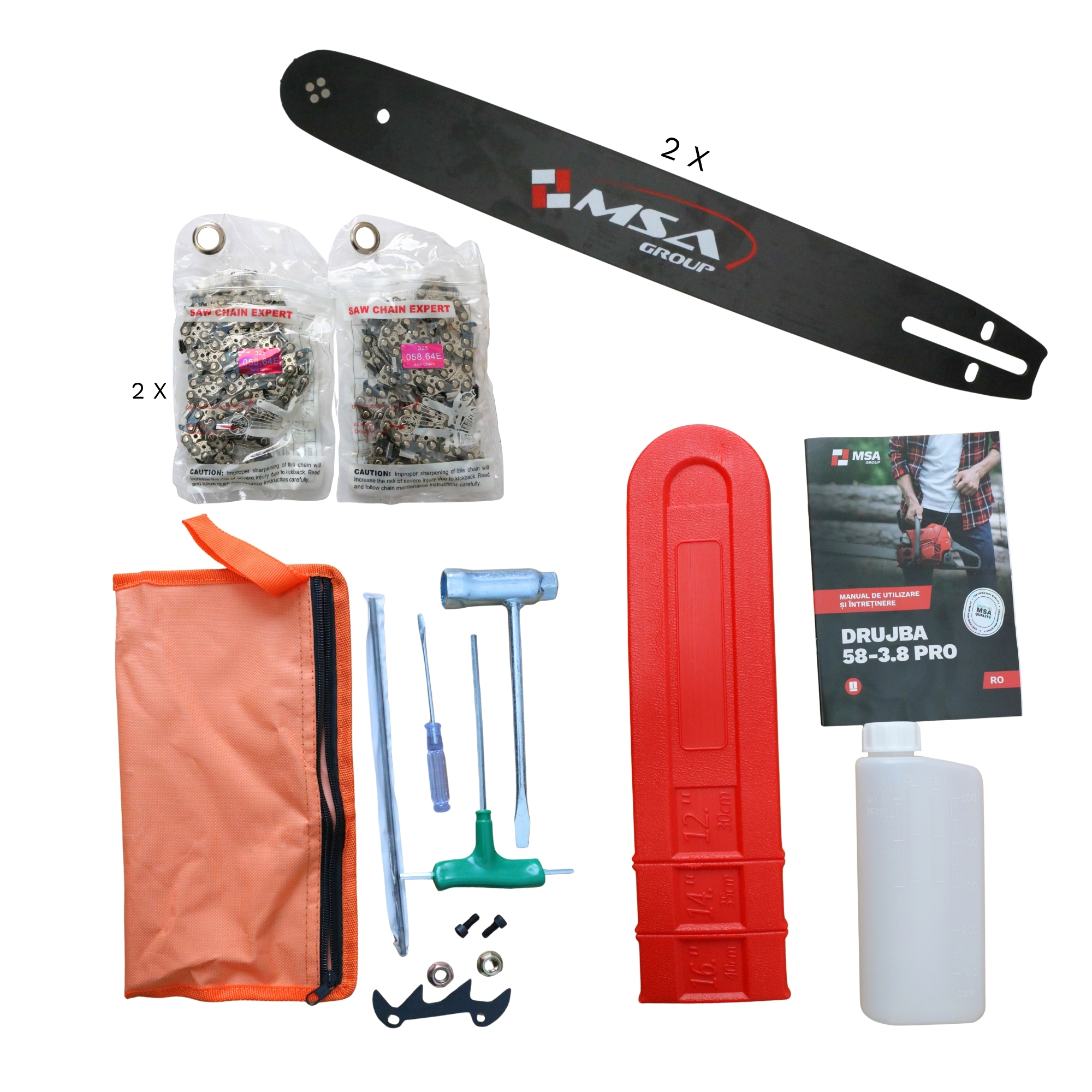 Drujbă pe benzină 58cc, 3.8 kW, lamă 40 cm, model 58-3.8 PRO (2 lame + 2 lanțuri, demaror + frână aluminiu) – MSA2746