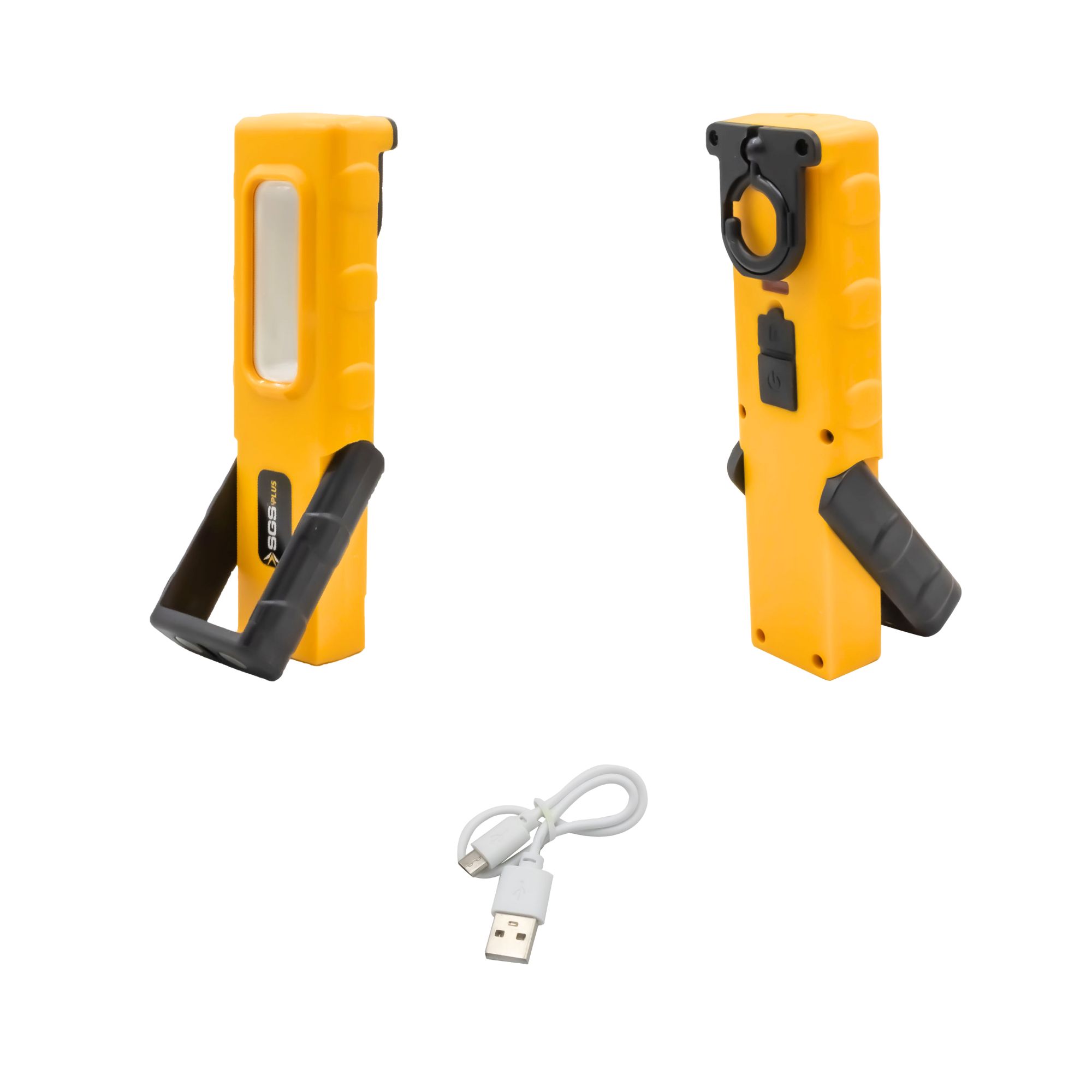 Bateria reîncărcabilă prin USB asigură o autonomie de 3-4 ore, iar baza magnetică și cârligul pliabil o fac ușor de fixat oriunde ai nevoie.