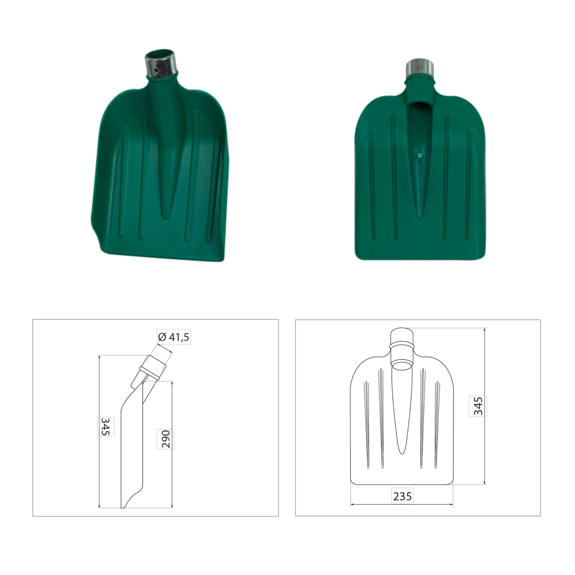 Lopată plastic verde întărită cu inel metalic , No.3, 348 g, 235 x 345 mm