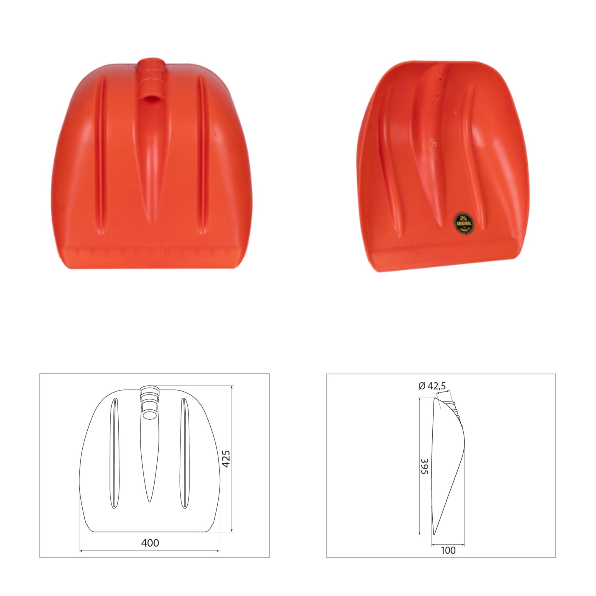 Lopată plastic portocalie, No.10, 660 g, 400 x 425 mm