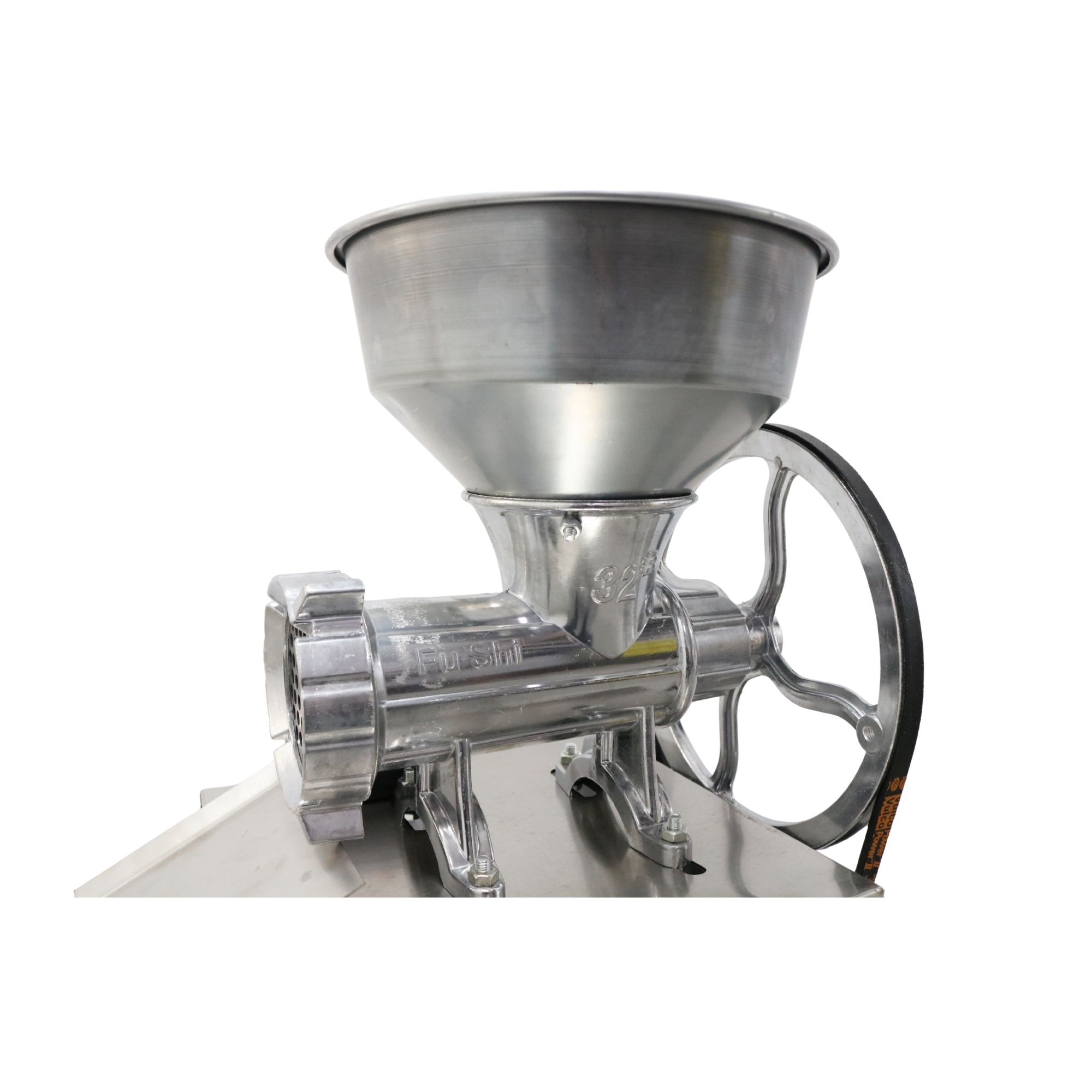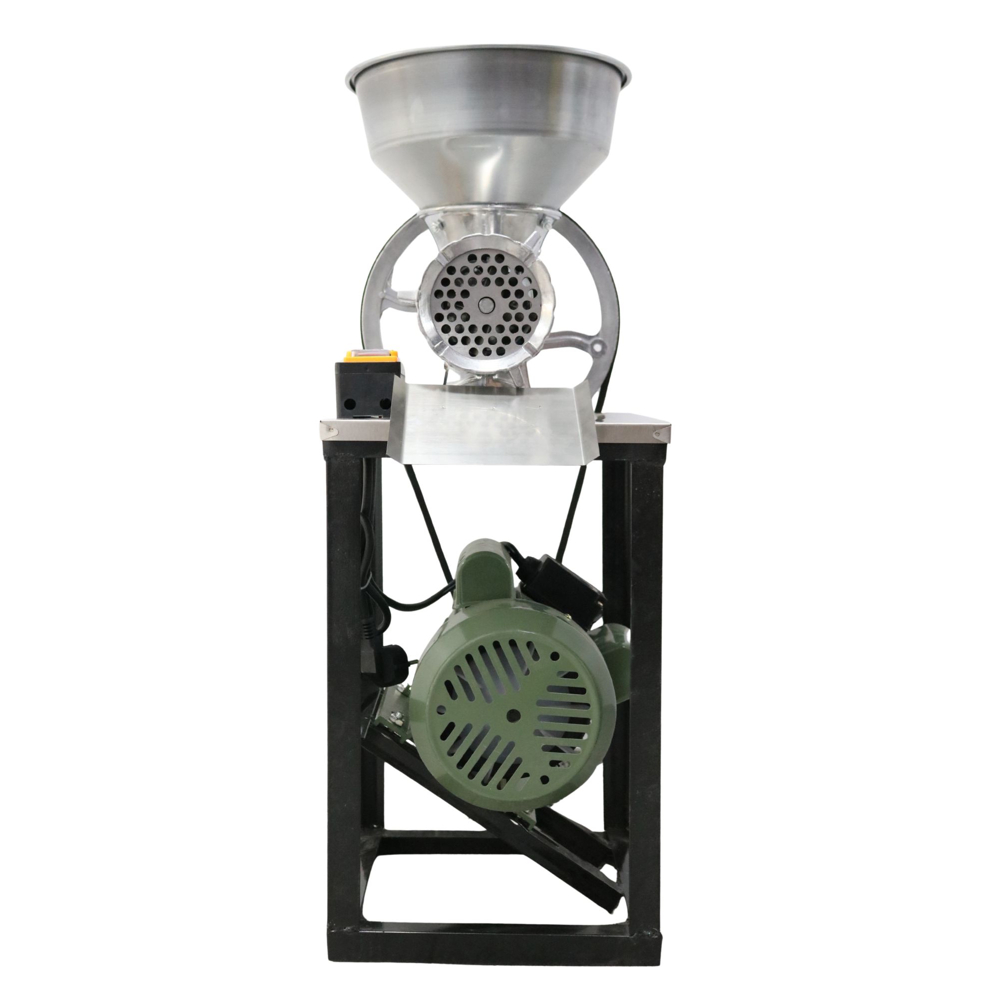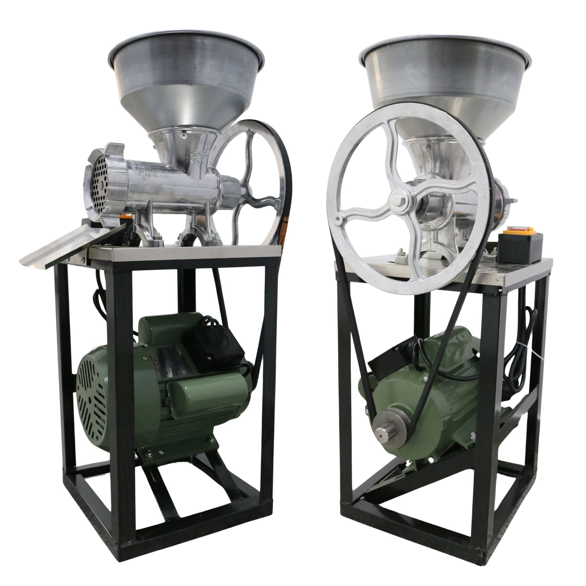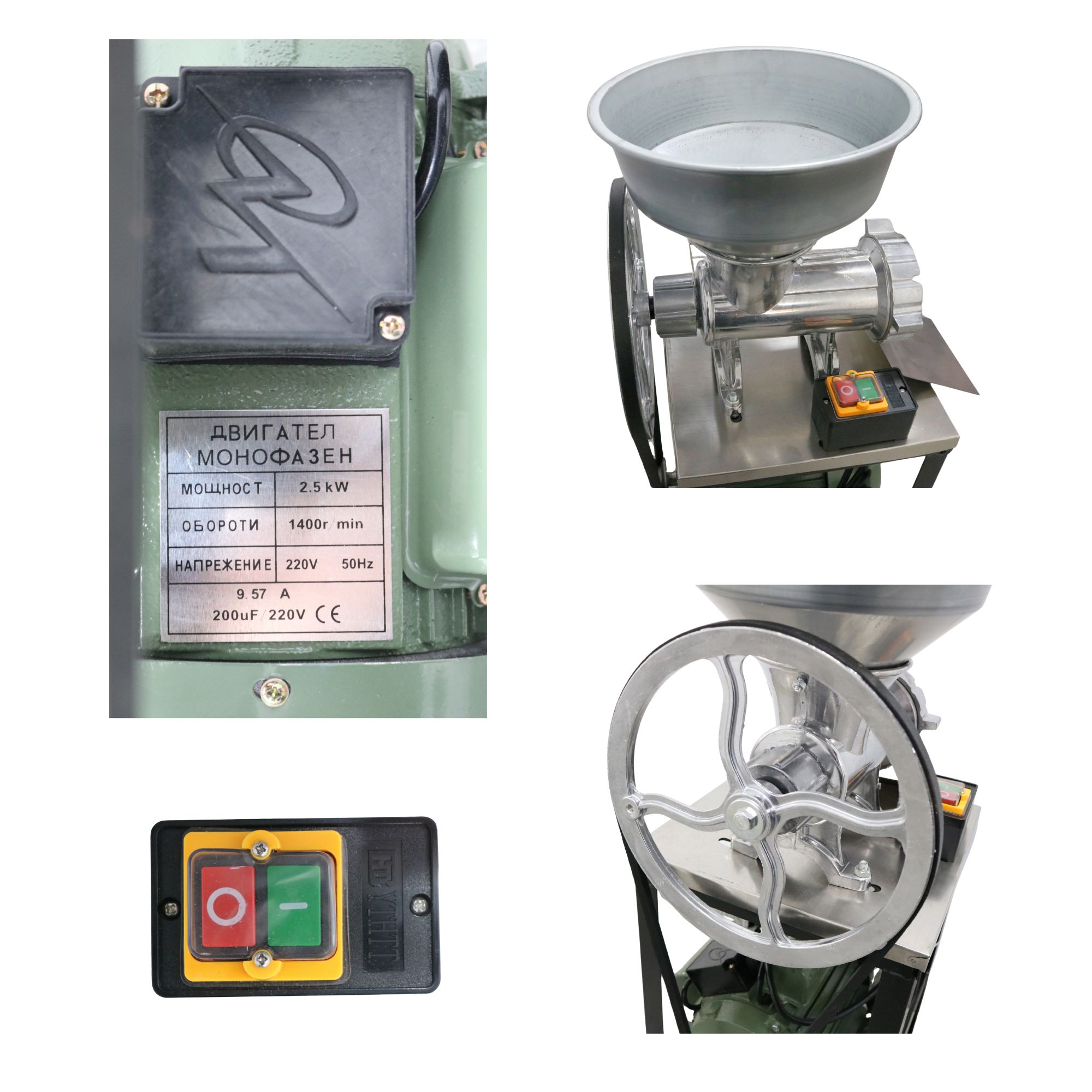 MSA1596 – mașină de tocat carne nr. 32, realizată din aluminiu turnat, echipată cu motor electric monofazic de 2,5 kW (220V, 50Hz), 1400 rotații/minut. Construcția solidă, cu cadru metalic vopsit în negru și cuvă din aluminiu, asigură rezistență și stabilitate. Pornirea și oprirea rapidă se face printr-un buton de siguranță ON/OFF.