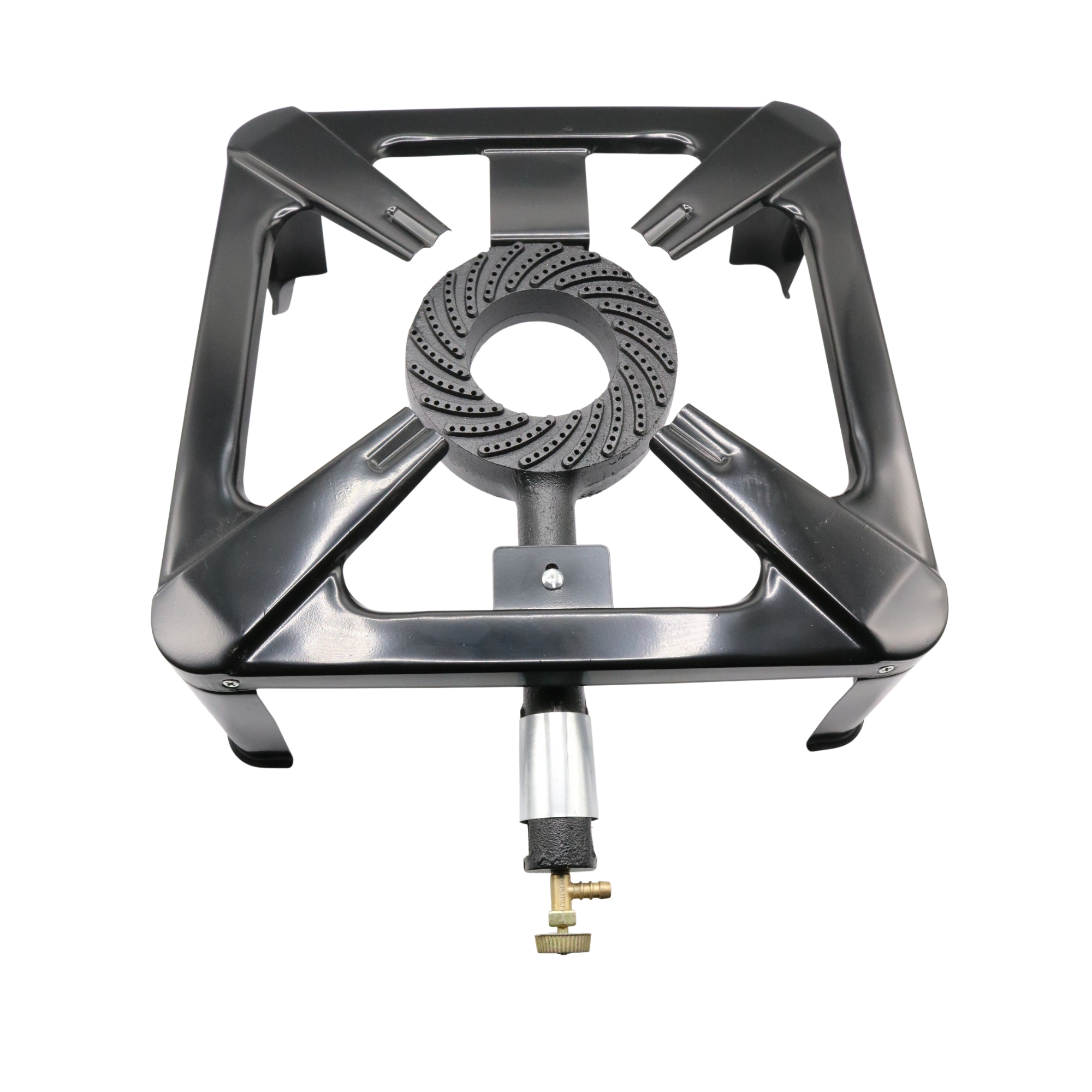 Arzătorul central asigură o flacără puternică și uniformă, potrivită pentru gătit rapid în diverse condiții.
