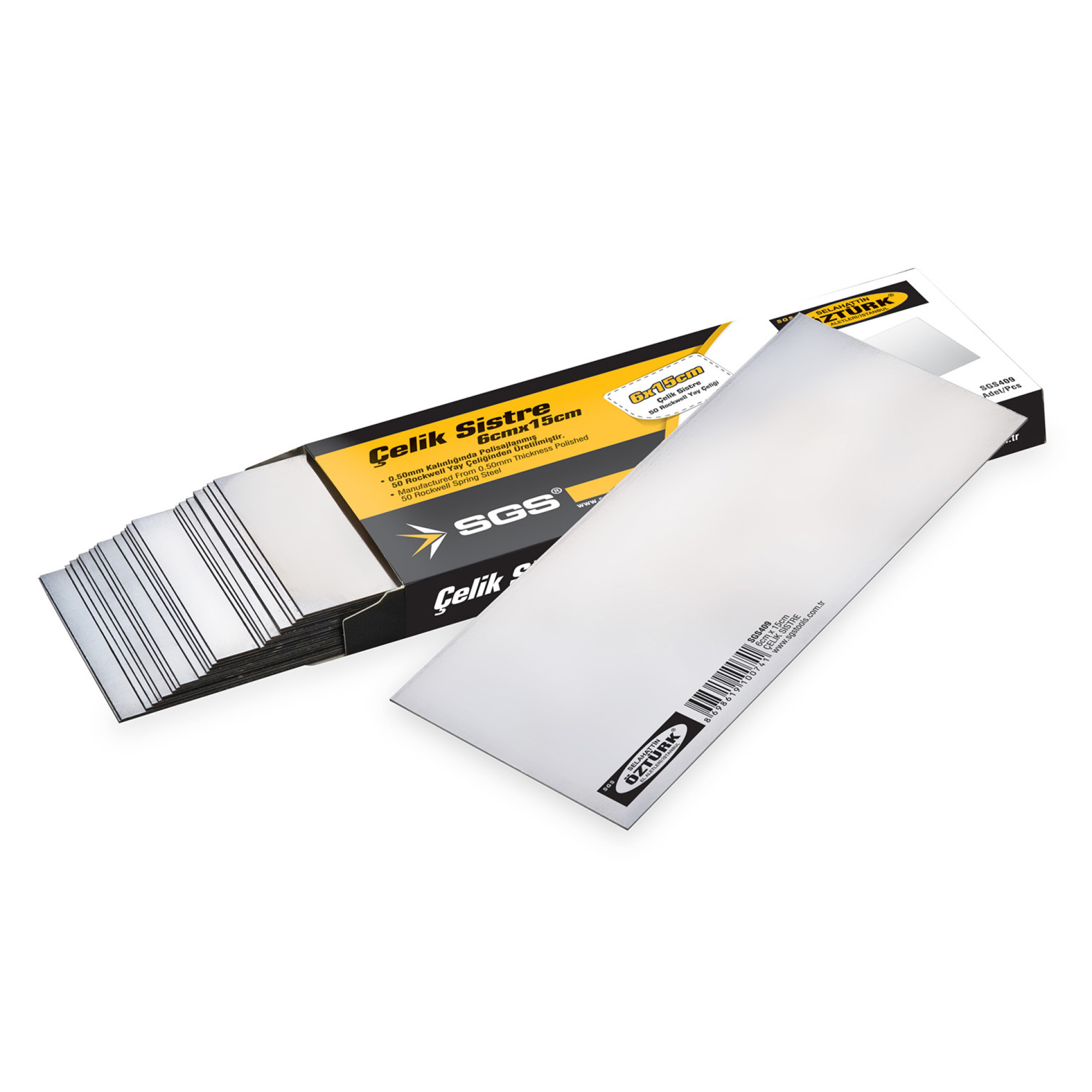 Racletă Profesională din Oțel SGS409 – 6 x 15 cm, Grosime 0.50 mm, 50 Rockwell, pentru Glet și Finisaje