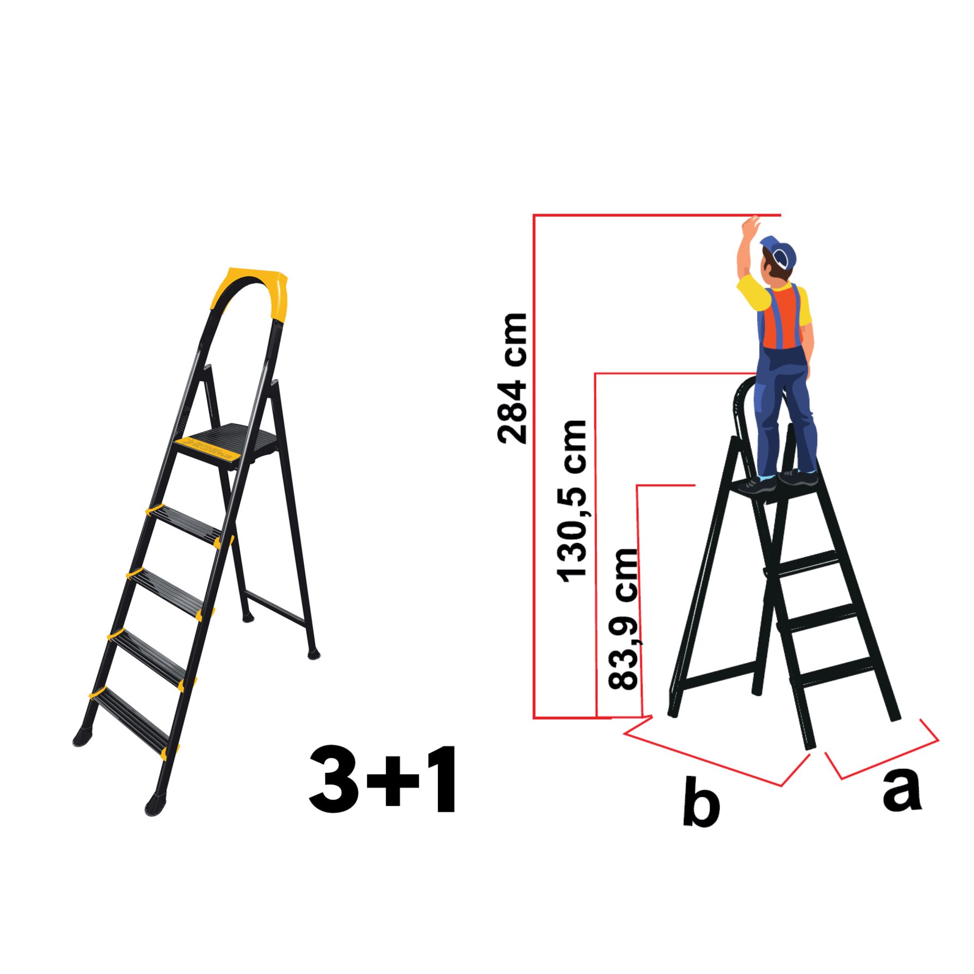 • Scară metalică Hope Step, 3+1 trepte, platformă superioară, structură solidă, 150kg