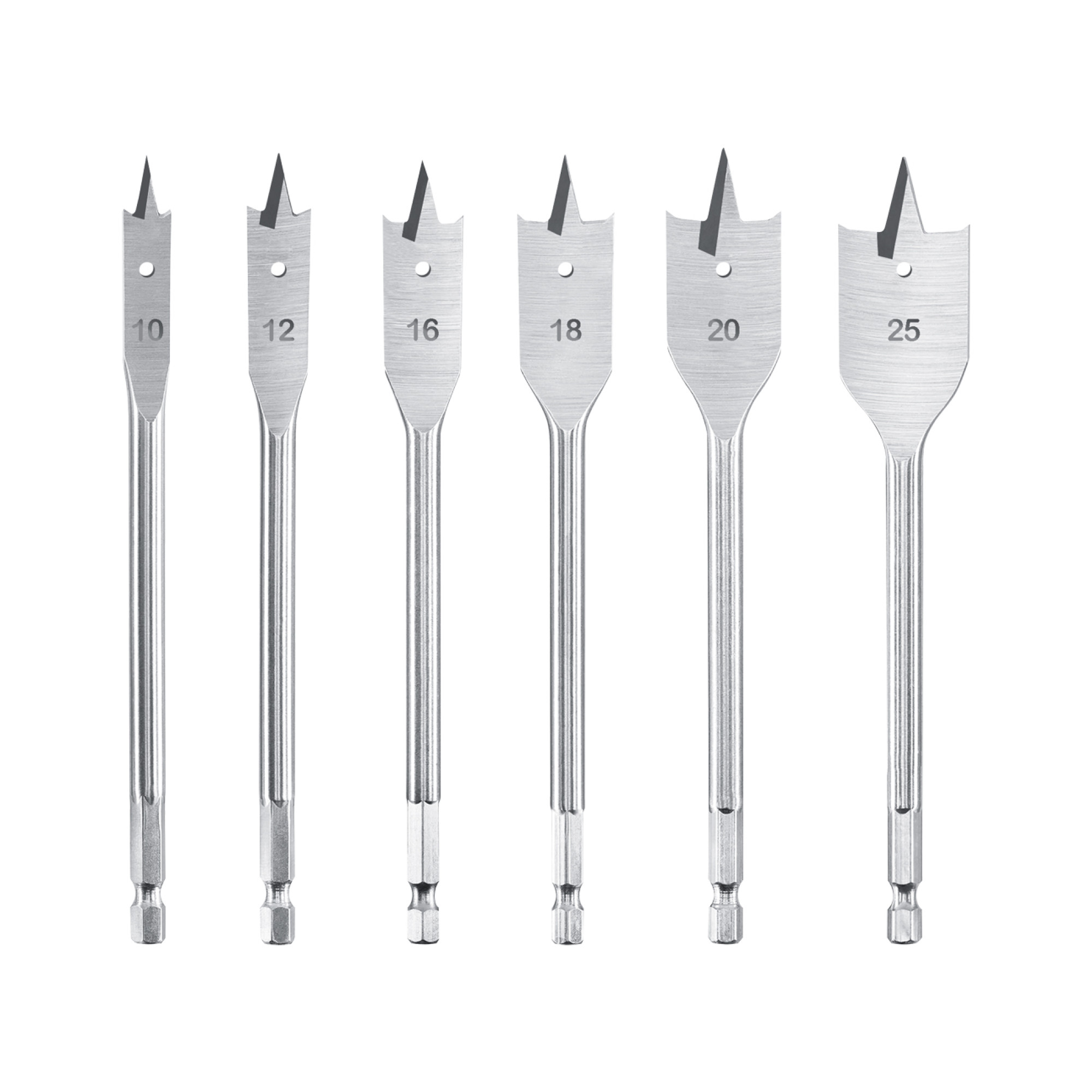 Set burghie tip paletă (frunză) pentru lemn, 6 piese, HEX, 10–25 mm, SGS