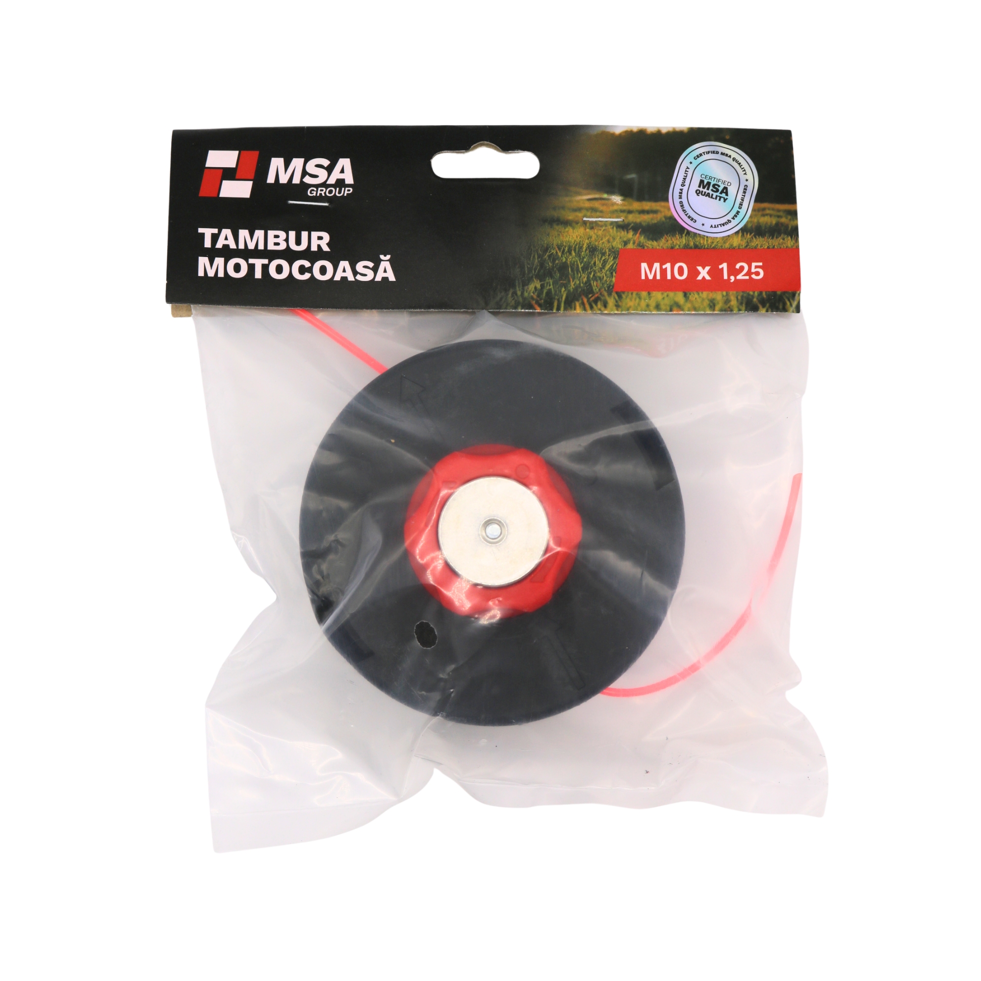 Tambur motocoasă mic, roșu cu negru + metal, M10 x 1.25, – MSA3408